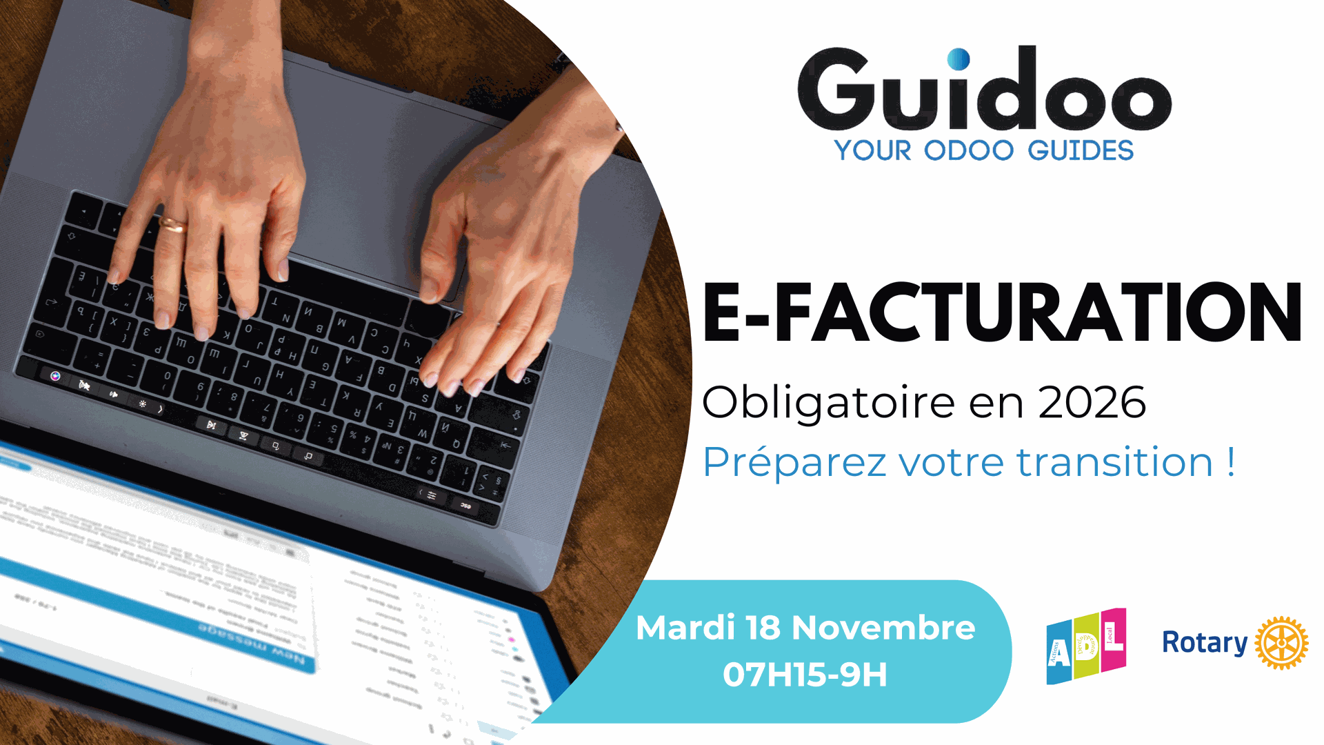 Cet atelier organisé en collaboration avec l’ADL de Lessines et avec le soutien du Rotary Club de Lessines a pour but d’informer et de former les entreprises belges à la nouvelle législation concernant la facturation. En effet, dès le 1er janvier 2026, toutes les factures effectuées entre 2 entreprise belges assujetties à la TVA devront OBLIGATOIREMENT être au format structuré et passer par le portail Peppol choisi par la Belgique.